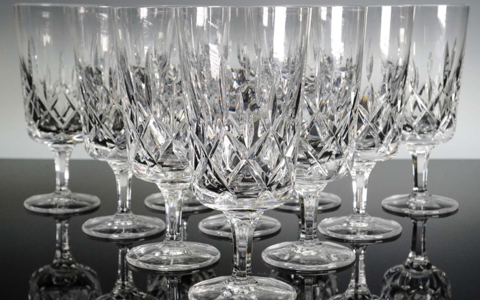 A striking vintage stemware option introduced in 1960, featuring deep cut criss-cross and fan patterns in hand-blown German crystal for a distinguished look.